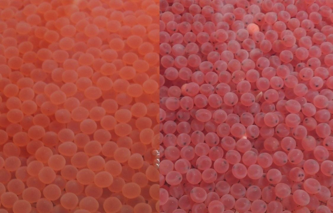Newly fertilized eggs (left) vs eyed eggs (right)